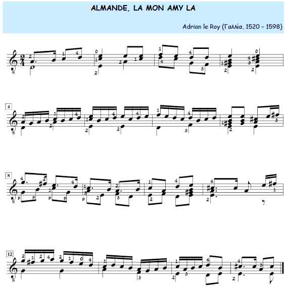 | ALMANDE, LA MON AMY LA | Adrian le Roy | 5 |